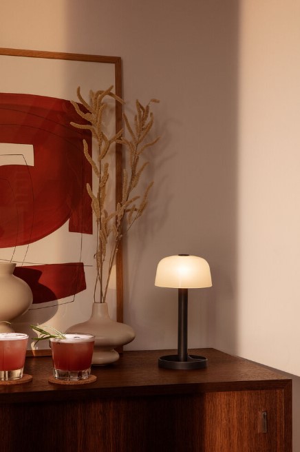 Borðlampi hvítur skermur, hlaðinn, dokka fylgir til hleðslu